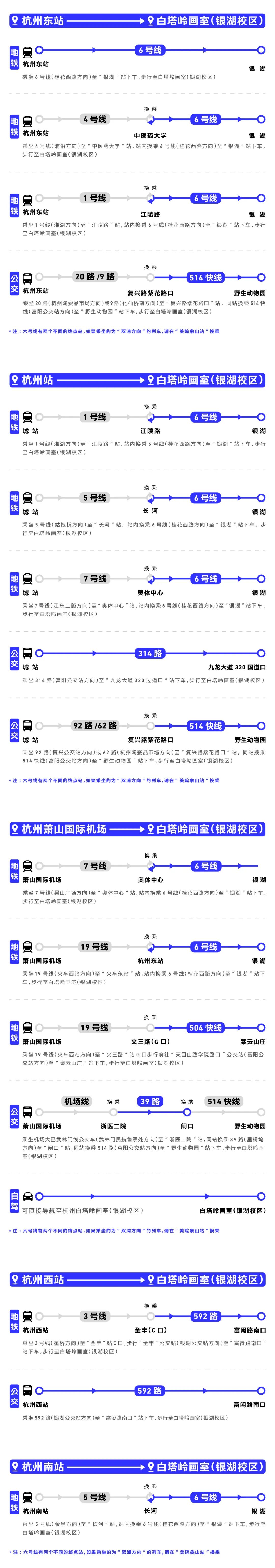 我们为大家梳理了分别从杭州东站、杭州站、杭州萧山国际机场、杭州西站、杭州南站出发可抵达白塔岭的最优线路,包含地铁方案、公交方案、自驾方案,可以根据自身需要提前保存线路图哦~