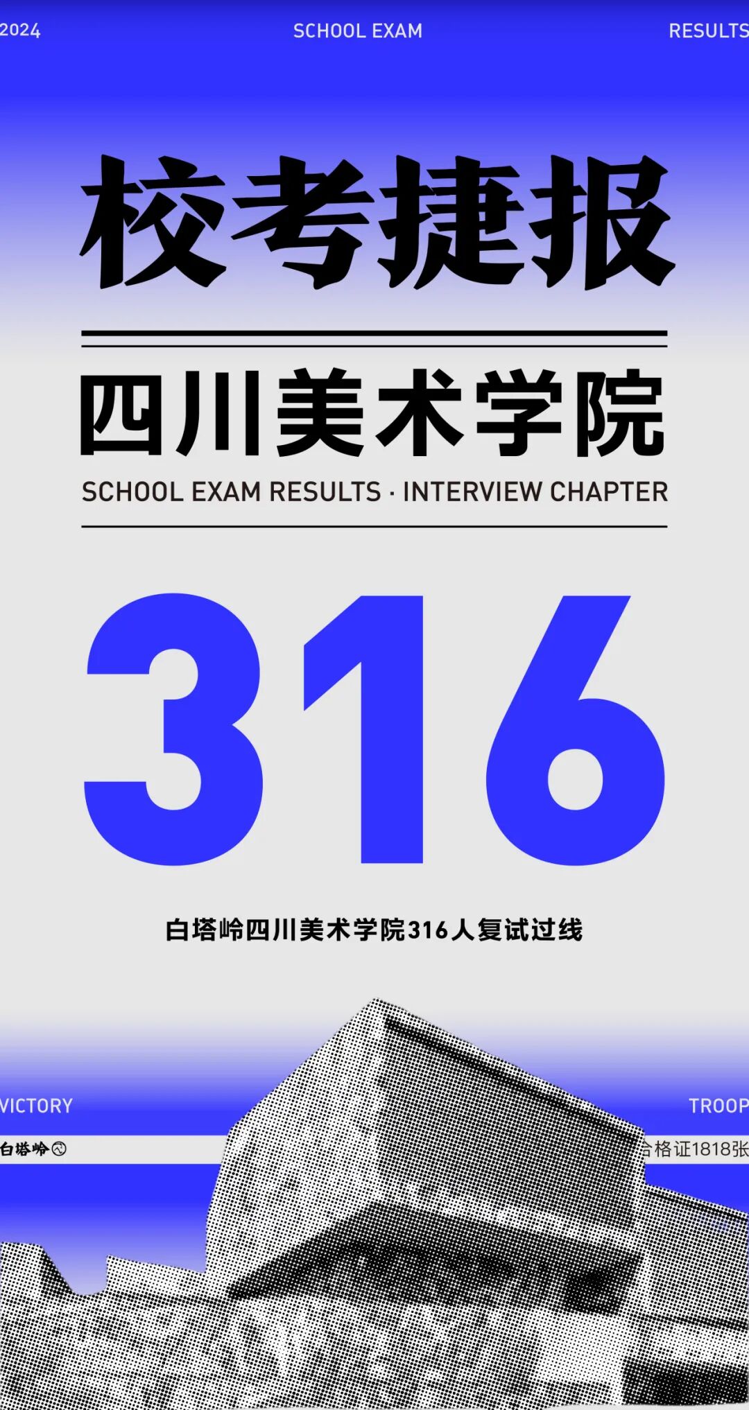清华大学10人复试过线!四川美术学院316人复试过线!前30名占3席,前100名占11席,合格证总量较去年增长2.53倍!广州美术学院276人复试过线!合格证总量较去年增长2.44倍!